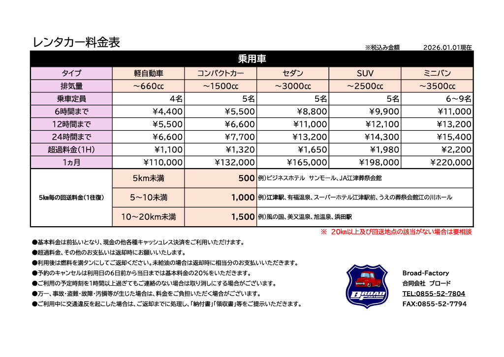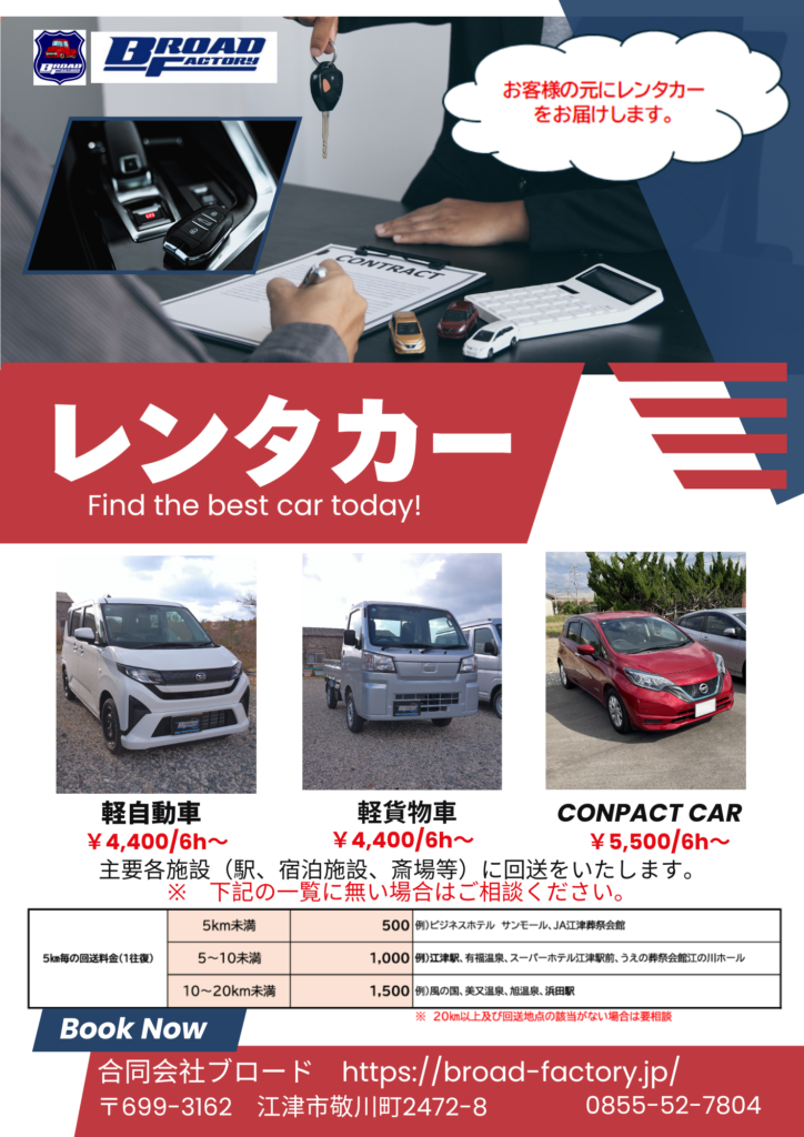近場の引っ越しや荷物の移動で運送会社を頼むほどでもない方に当社のレンタカーサービスのご案内です。